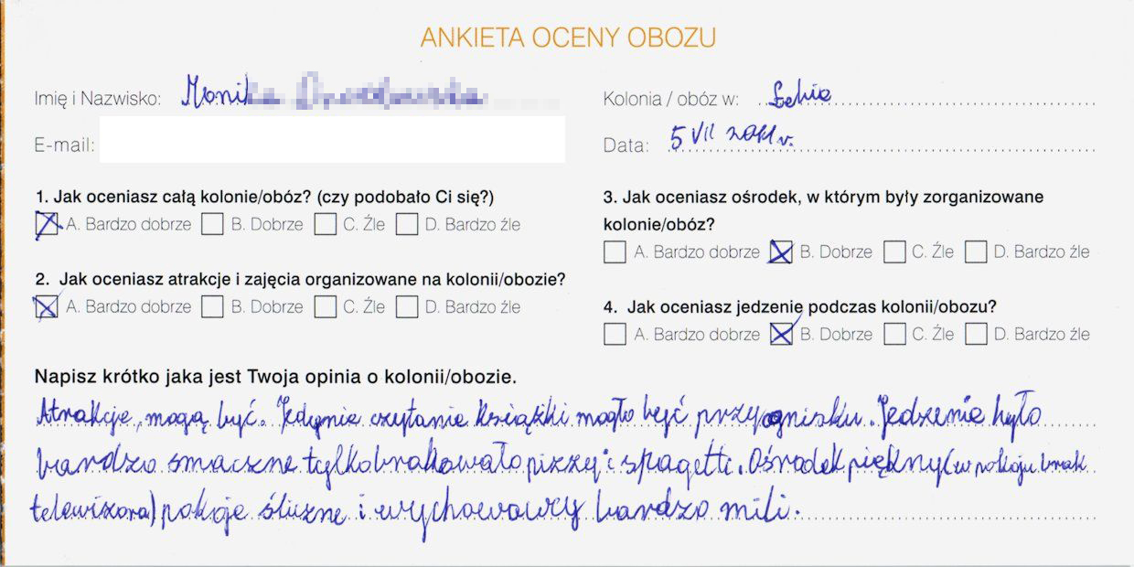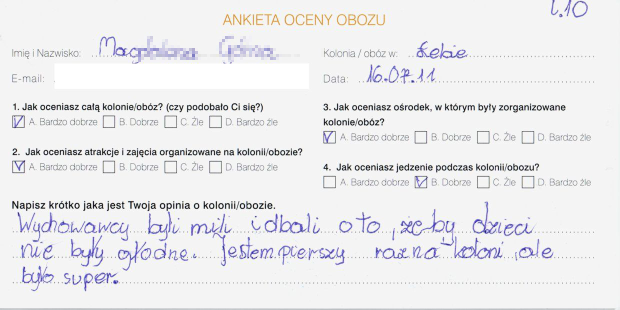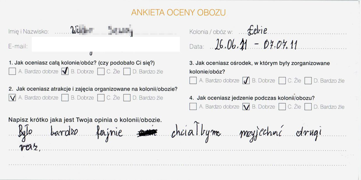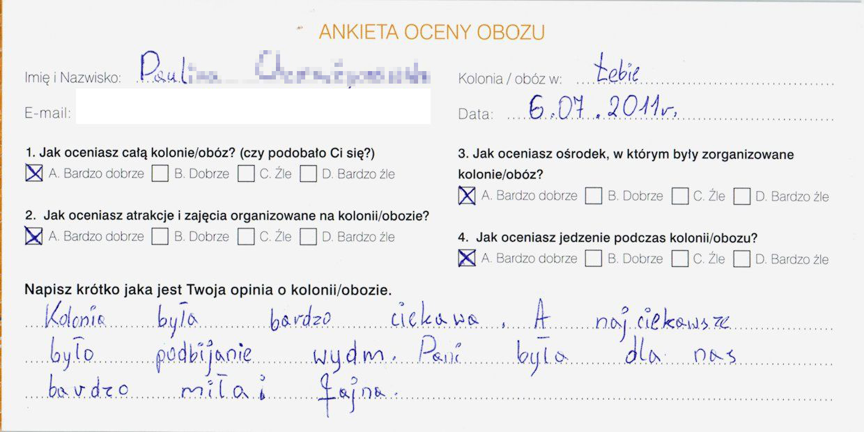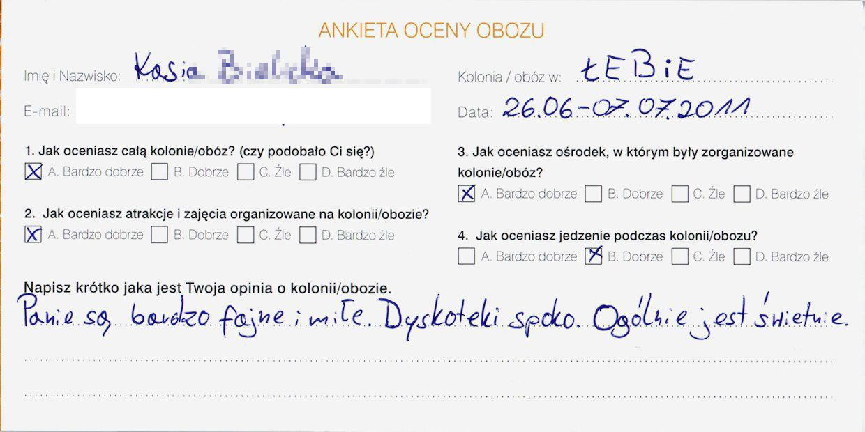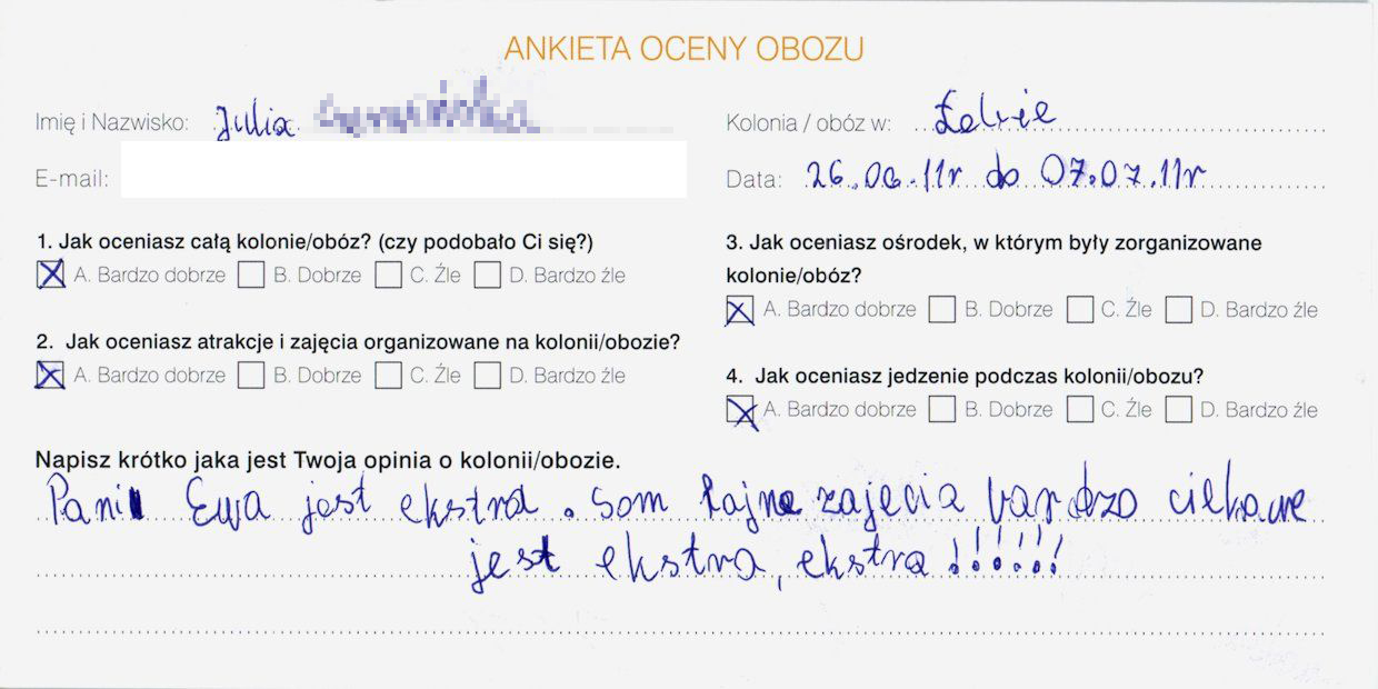 Procent ocen bardzo dobrych i dobrych na podstawie 264 opinii uczestników