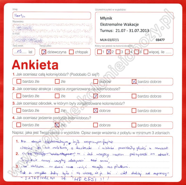 Procent ocen bardzo dobrych i dobrych na podstawie 223 opinii uczestników
