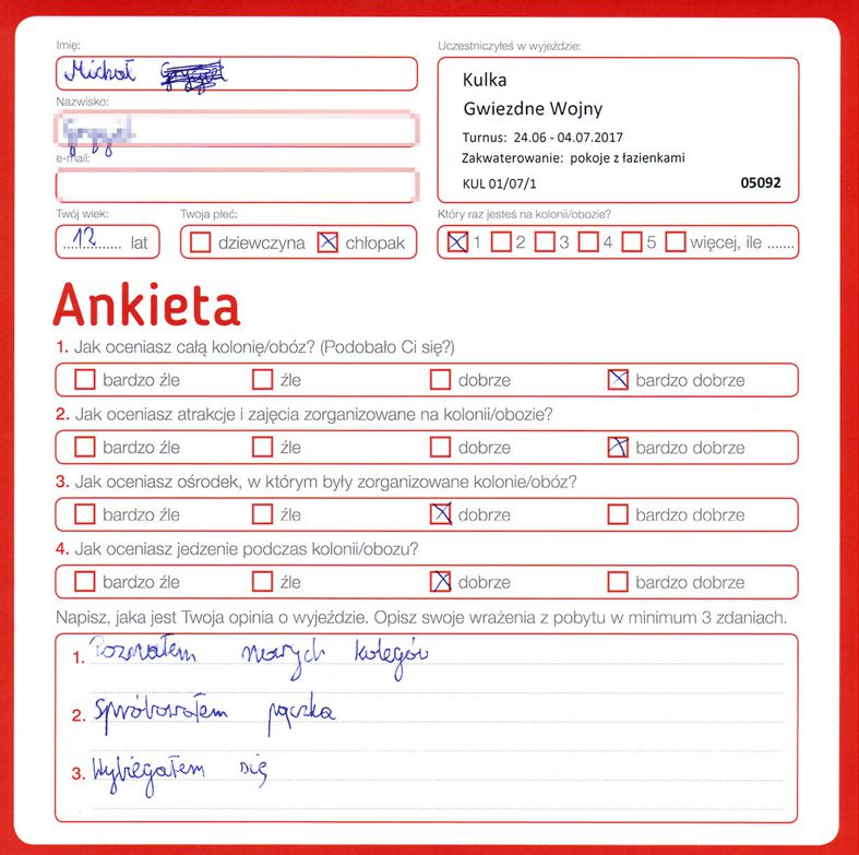 “Poznałem nowych kolegów. Poznałem nowe zabawy. Poznałem nowe miejsce na fajne 10 dni”