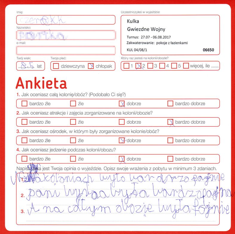 “Na koloniach było bardzo fajnie. Pani była bardzo fajna. A na całym obozie była fajnie”